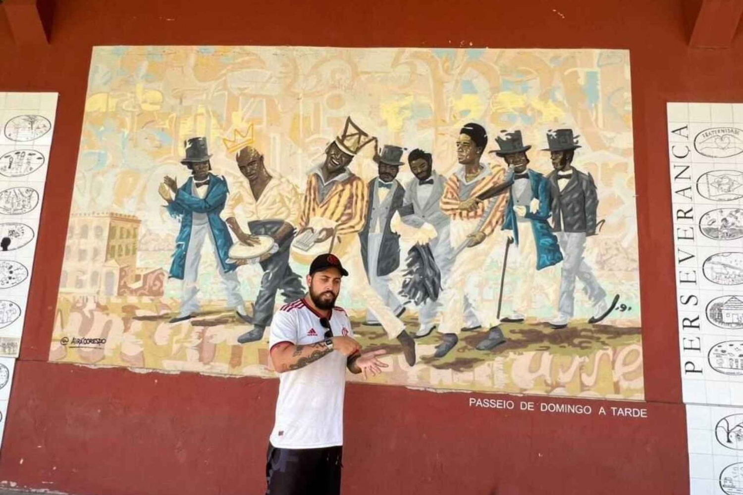 In Lapa, discover a vibrant street adorned with plentiful art, leading to the iconic Selaron Steps. Afterward, go to the nearby Cineland station and board a train to the aquarium. At the aquarium, prepare to be amazed by a monumental mural depicting Rio's history of slavery, complemented by Eduardo Kobra's awe-inspiring graffiti.
